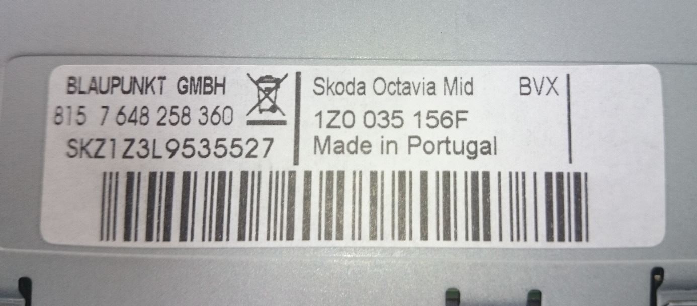 Skoda Radio Code SKZ1Z3L Octavia Mid 1z0 035 156F